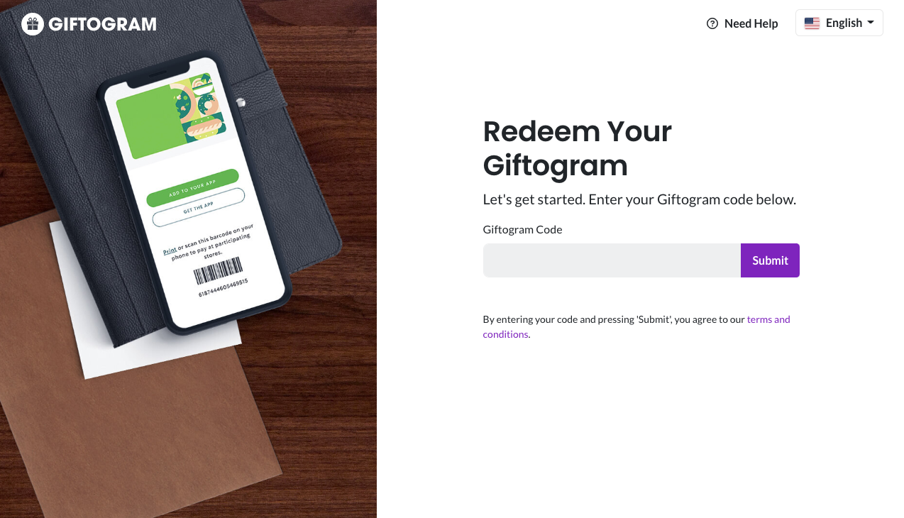 Your recipients will receive their Giftogram and head to the redemption site and enter their code: