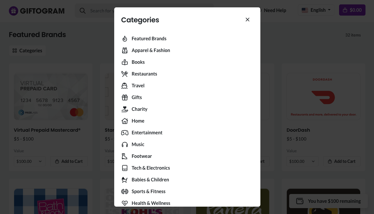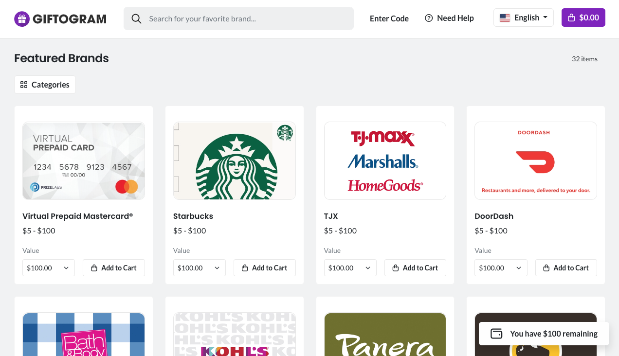 Next they'll see all of the available gift card brands: