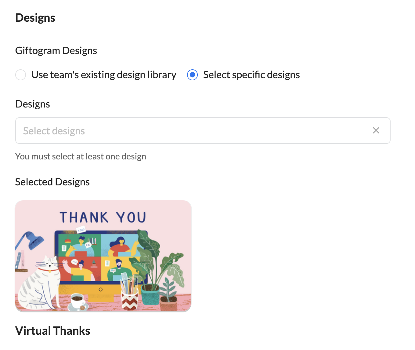 6. Select the Giftogram designs you'd like to use for the campaign.