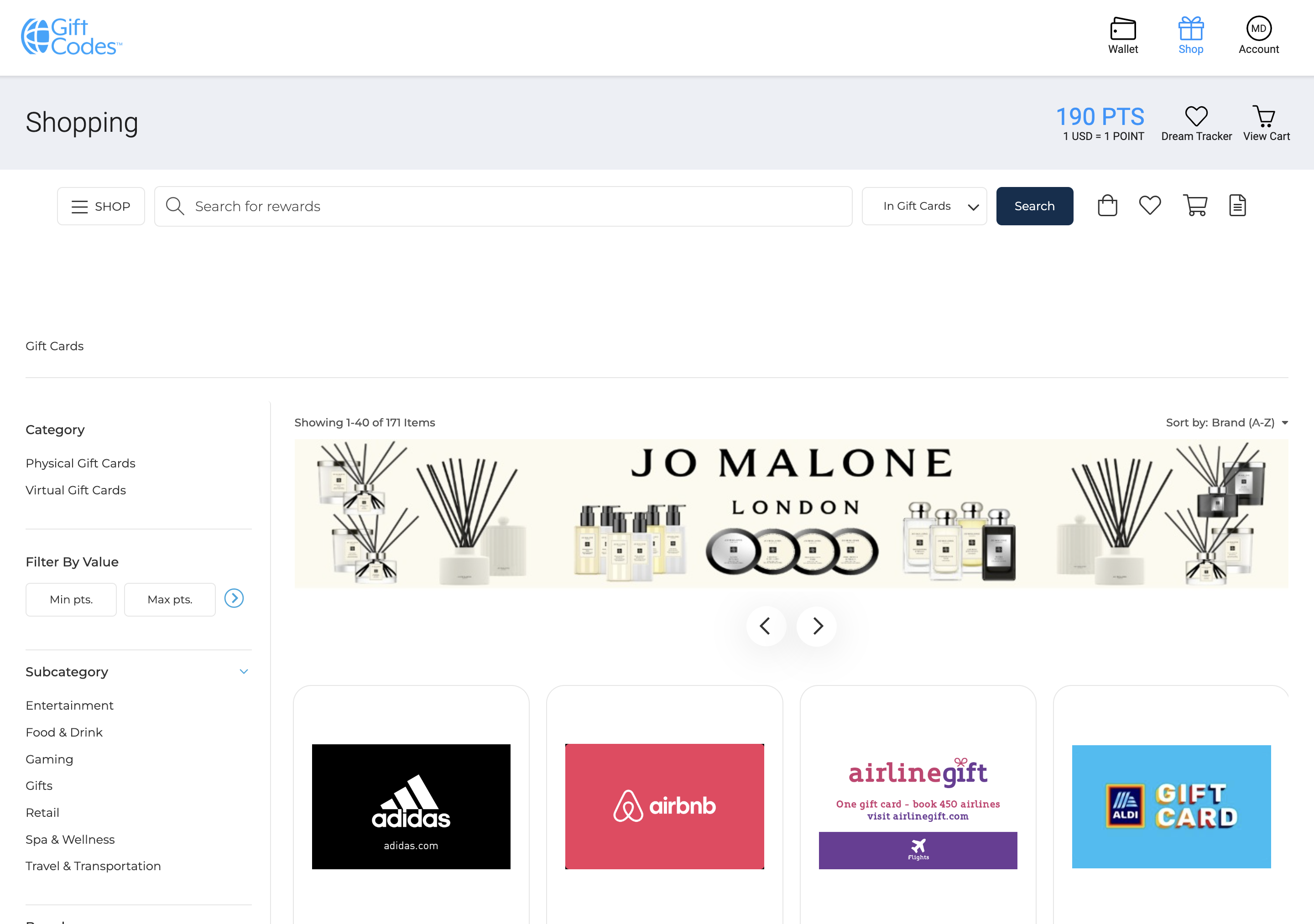GCodes is a great option for recipients in countries not listed above. This is an international shopping website that converts its USD gift cards into points to purchase products, services, or virtual gift cards in the recipient’s home country.