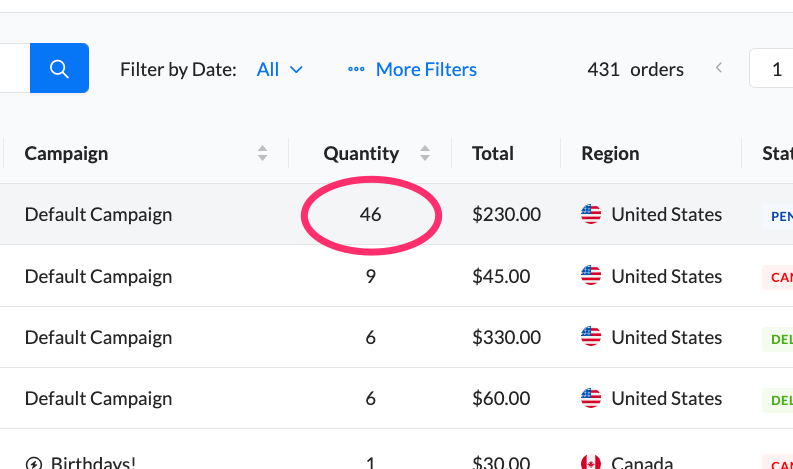Giftogram orders are organized by transaction. This means all Giftogram emails sent under a single order will be grouped.
