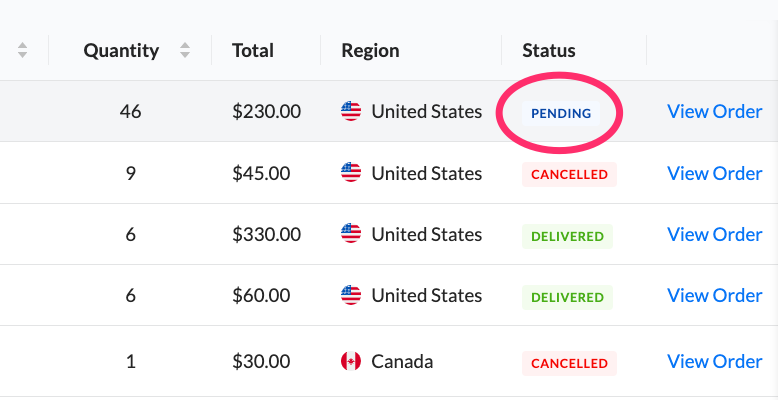If you click "View Order" next to any order, you can see all of the emails sent under that single order and view their statuses as well as cancel, resend, or download a receipt for the entire order: